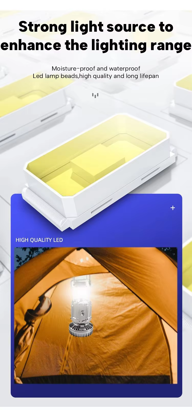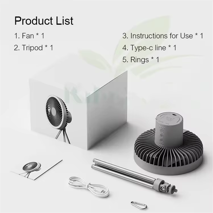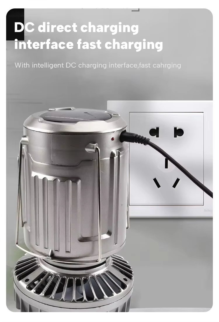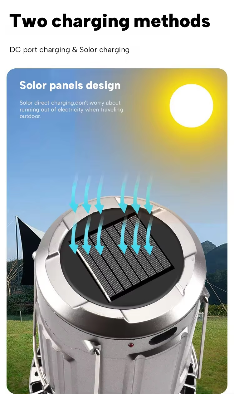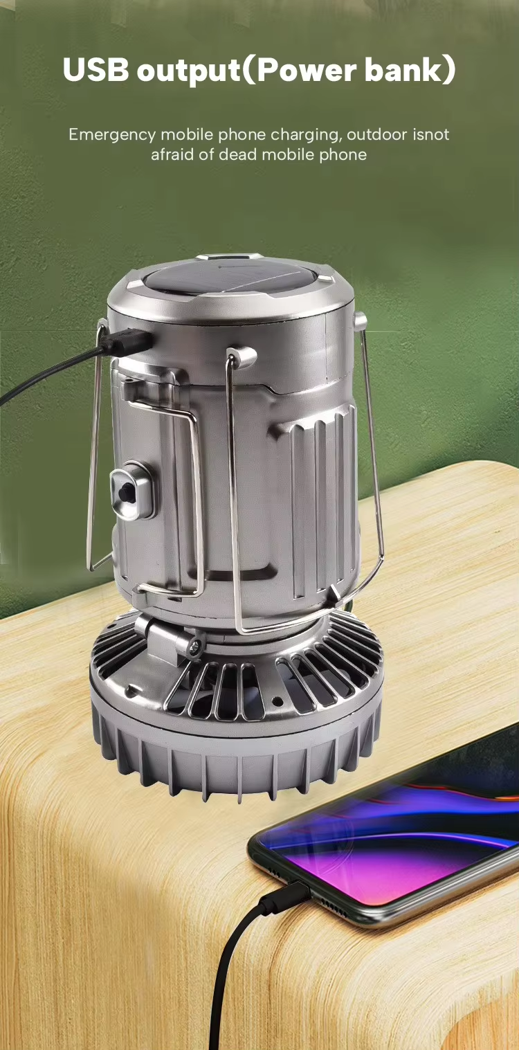 Portable Outdoor Camping Fan Light Solar LED Tent Emergency Light Rechargeable with Button Switch Type-C Rechargeable