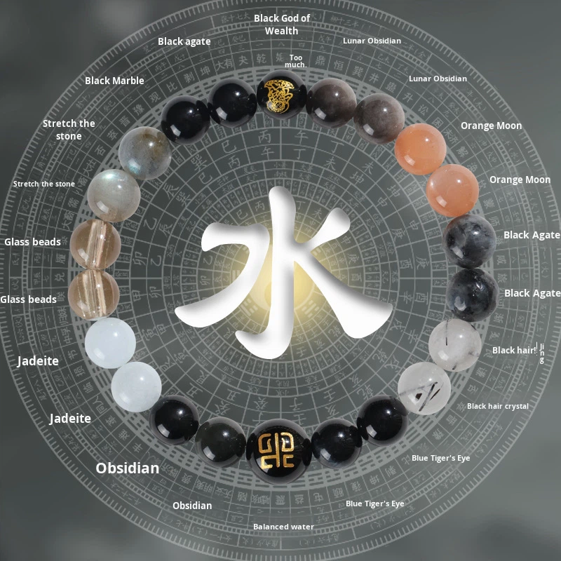 A bracelet for attracting wealth and career success, made of natural crystal and supplementing the five elements (metal, water, fire, earth, water, and wood).