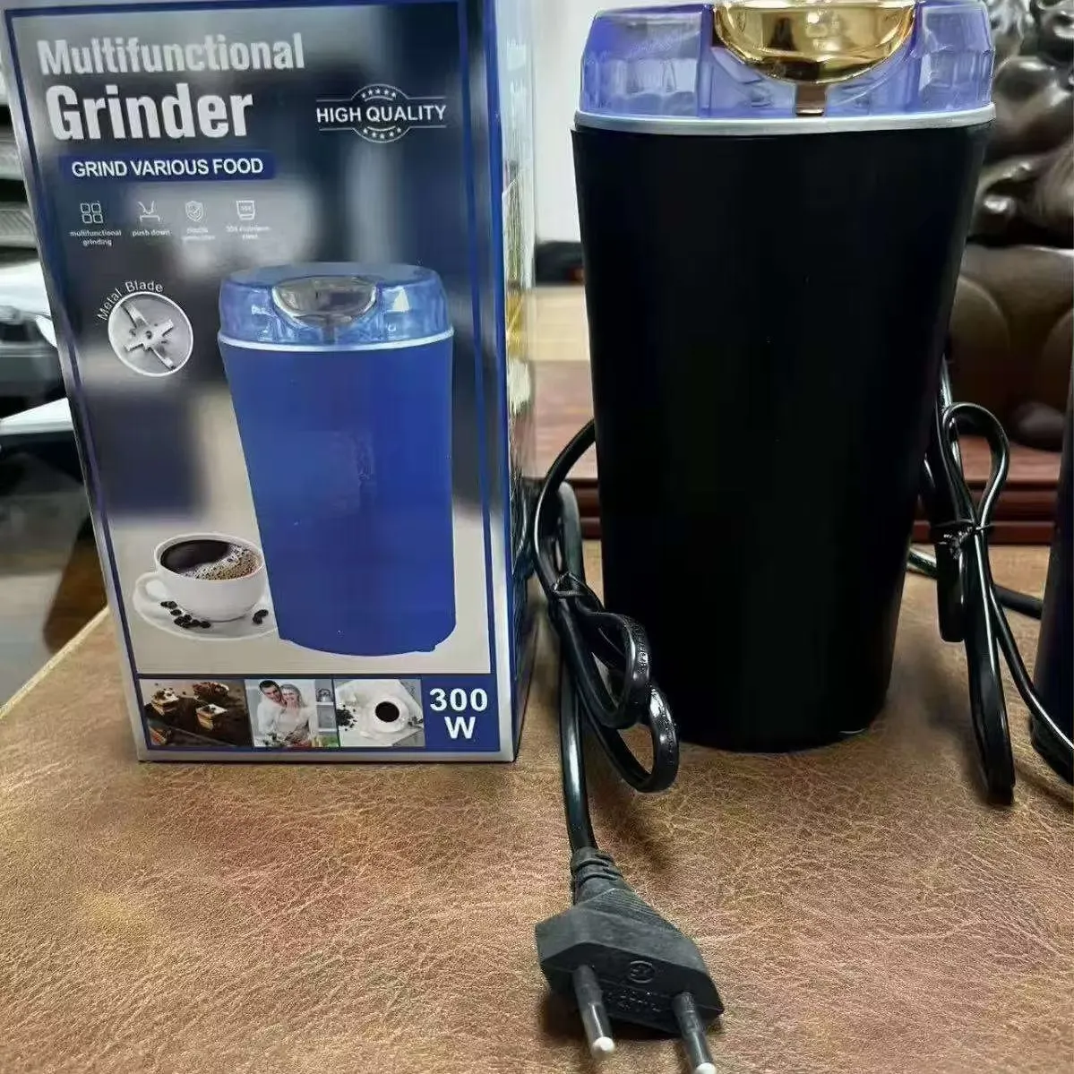Automatic mini multifunction electric coffee grinder with stainless steel blade.