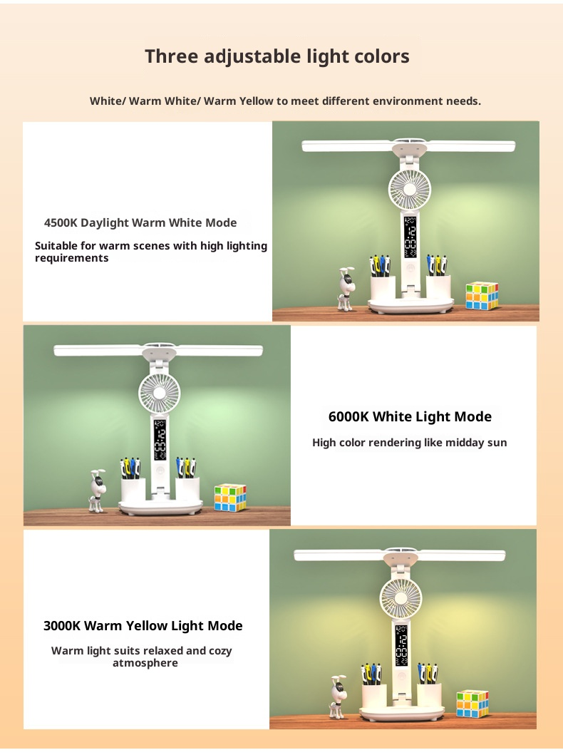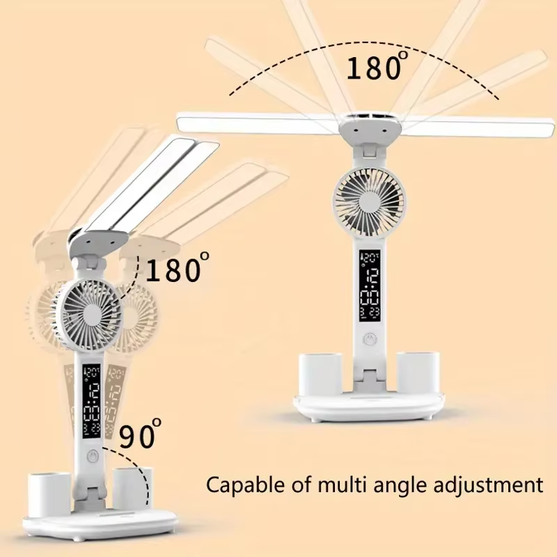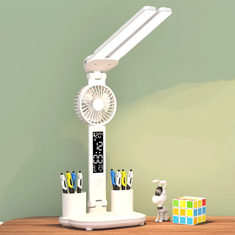 Dimmable LED desk lamp with 180-degree rotation, foldable, USB 2-head, suitable for reading and studying.