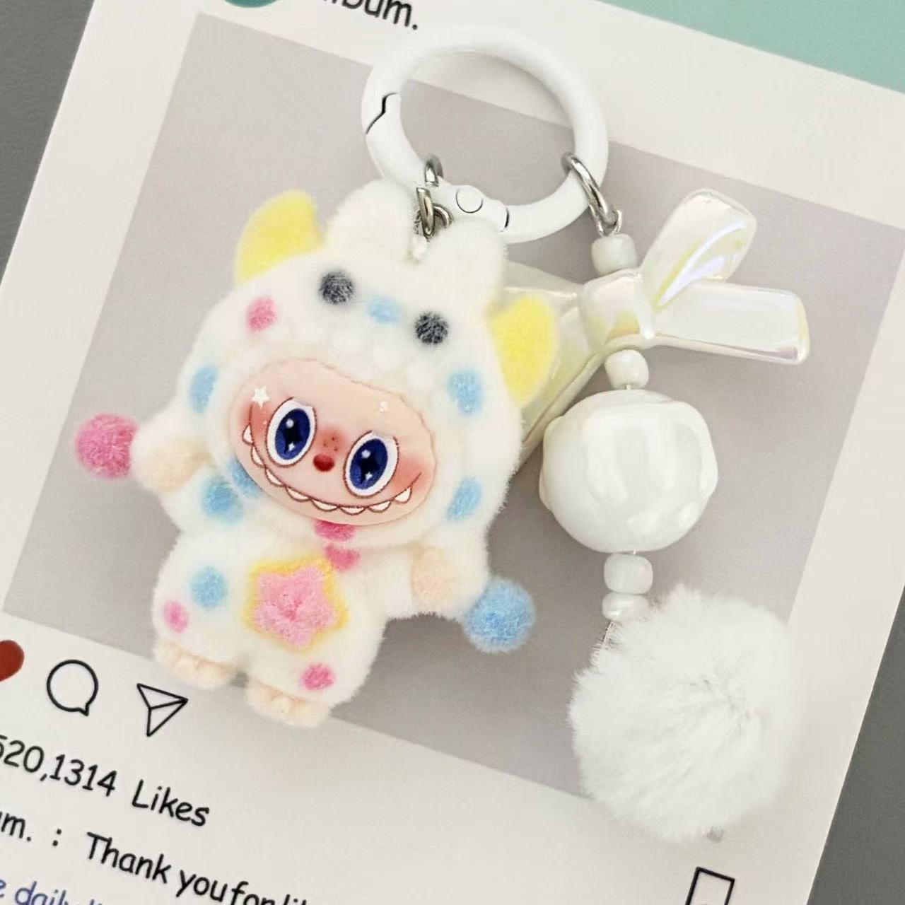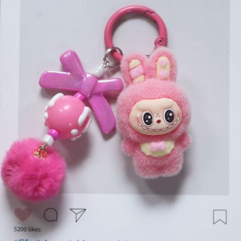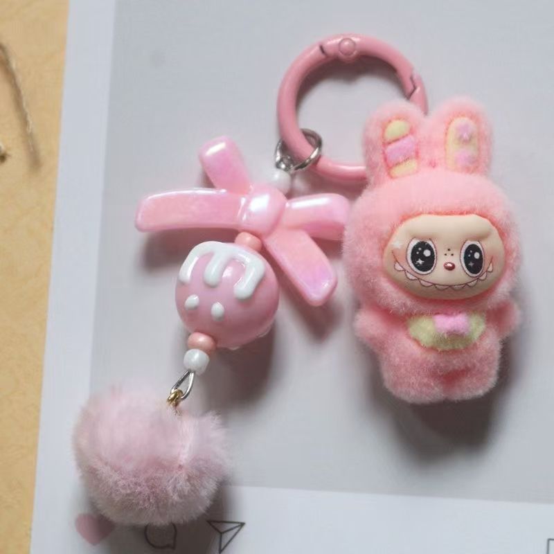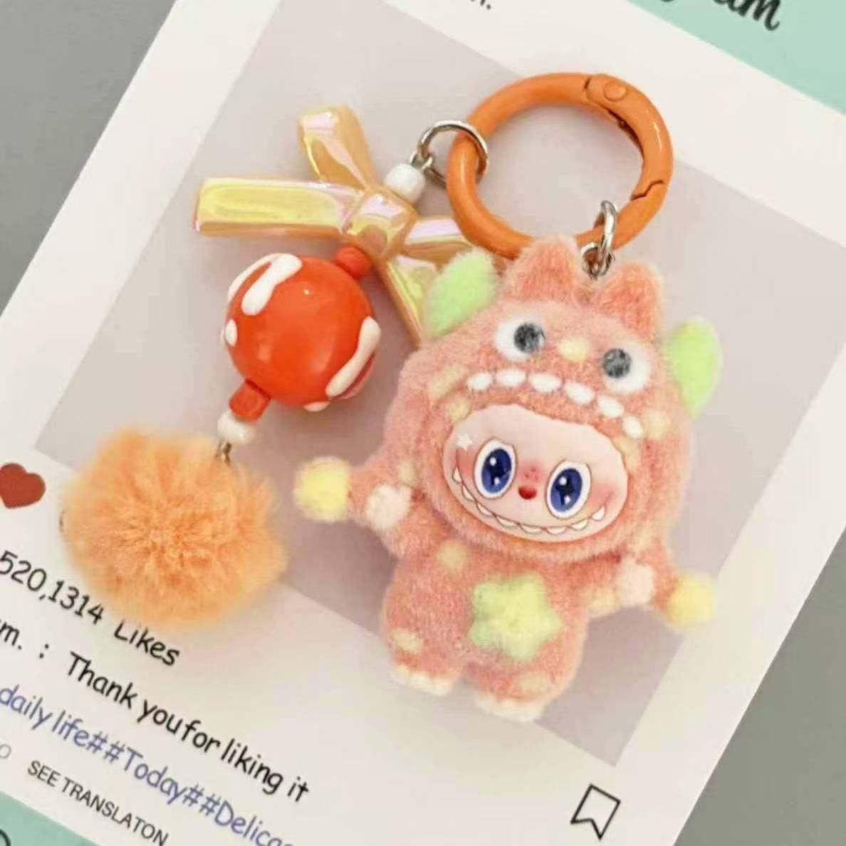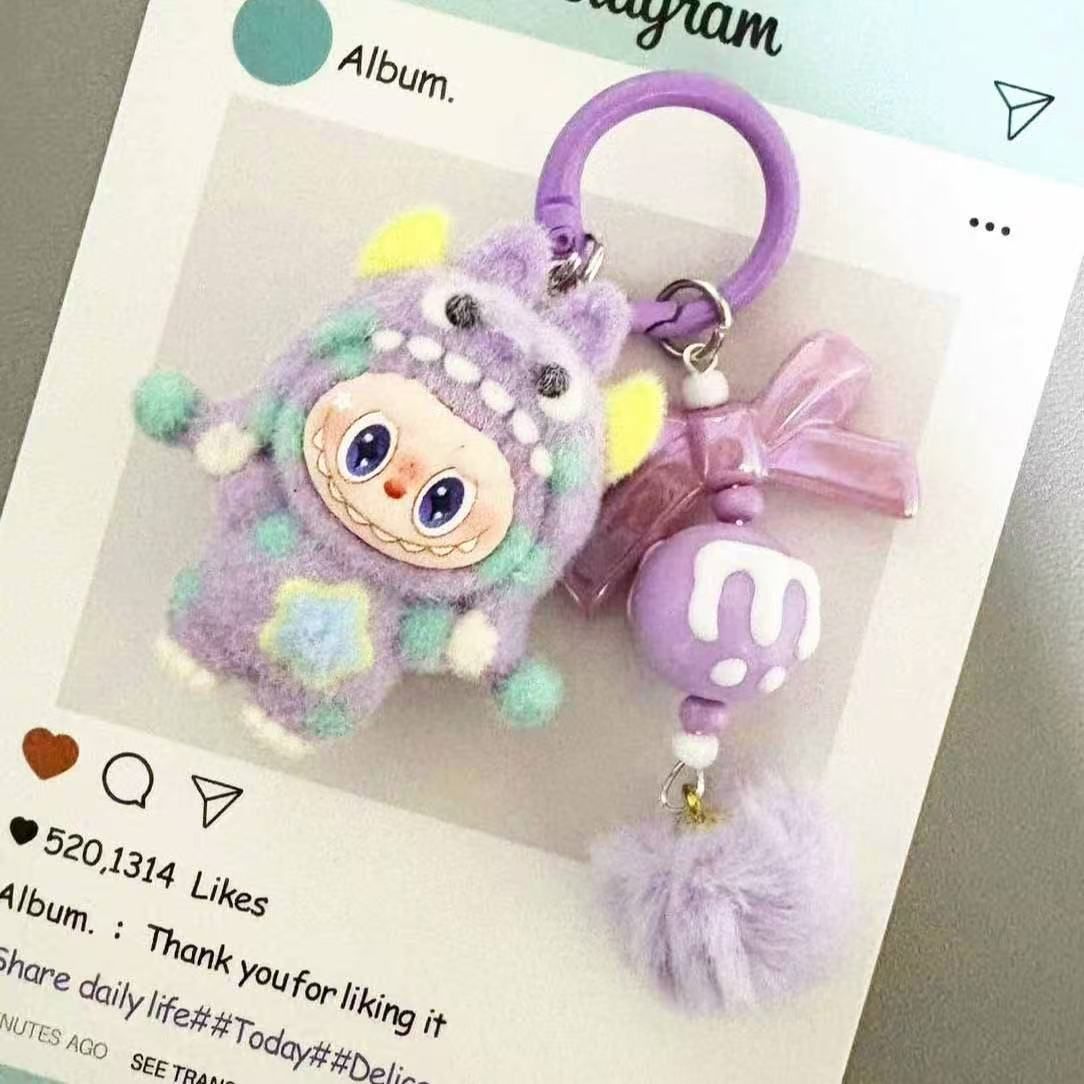 New flocked polka dot monster fabric bag charm, plush keychain, key ring