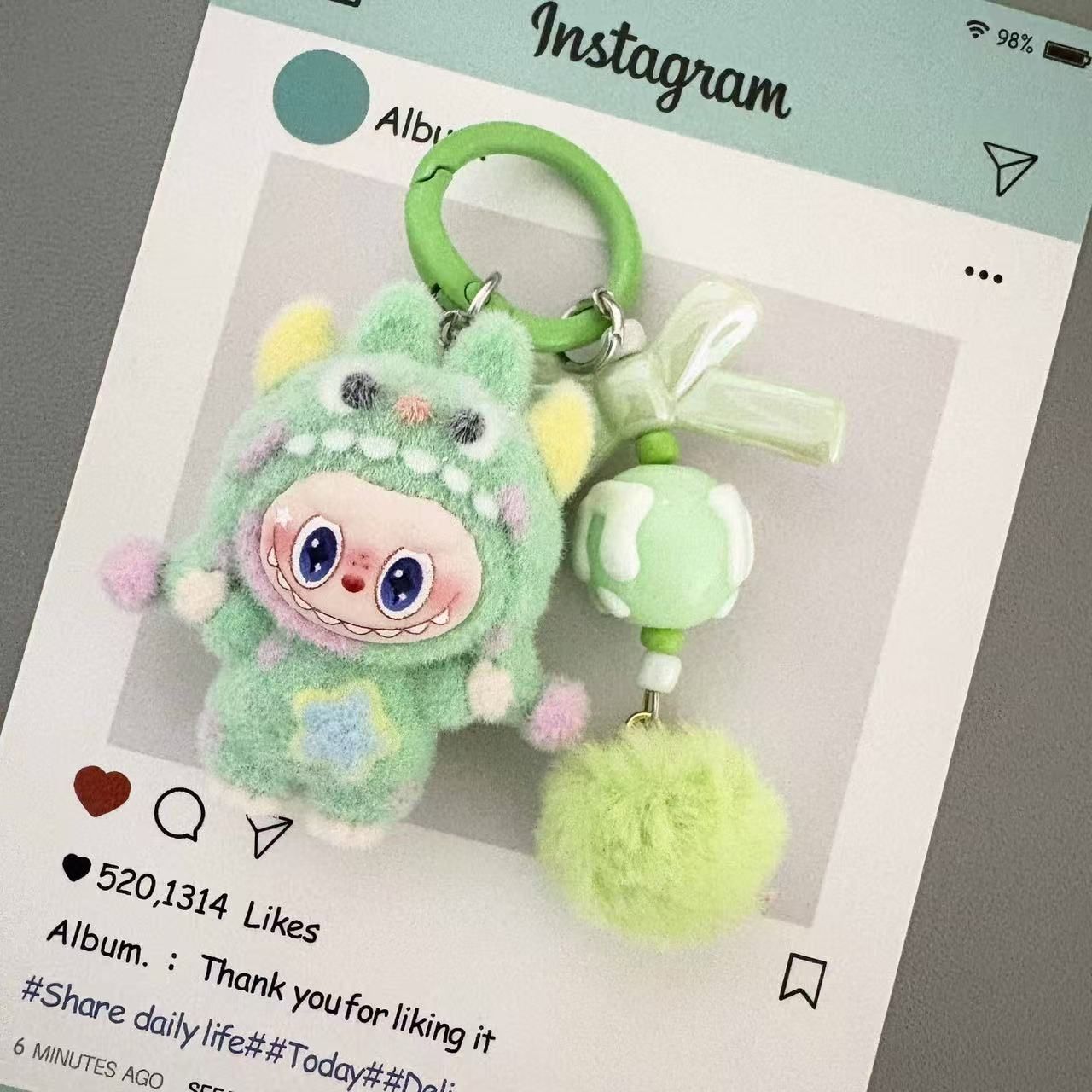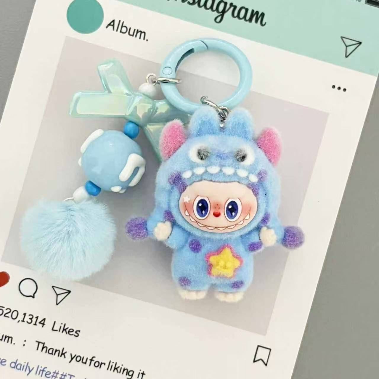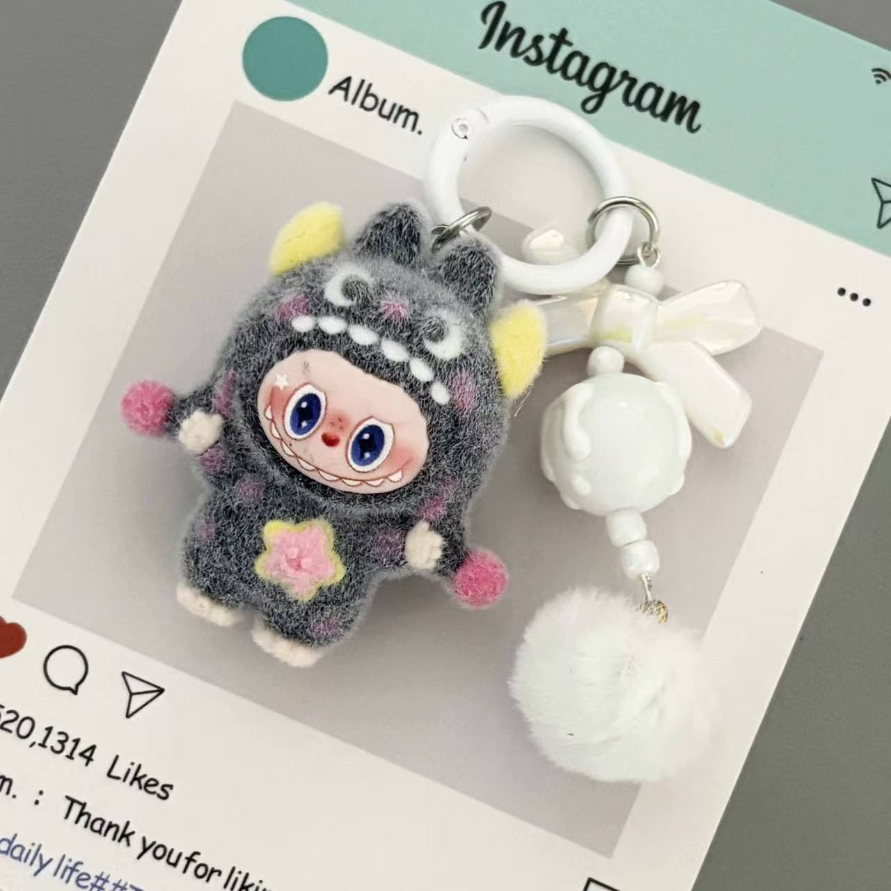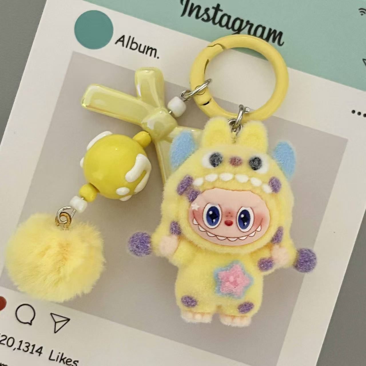 New flocked polka dot monster fabric bag charm, plush keychain, key ring