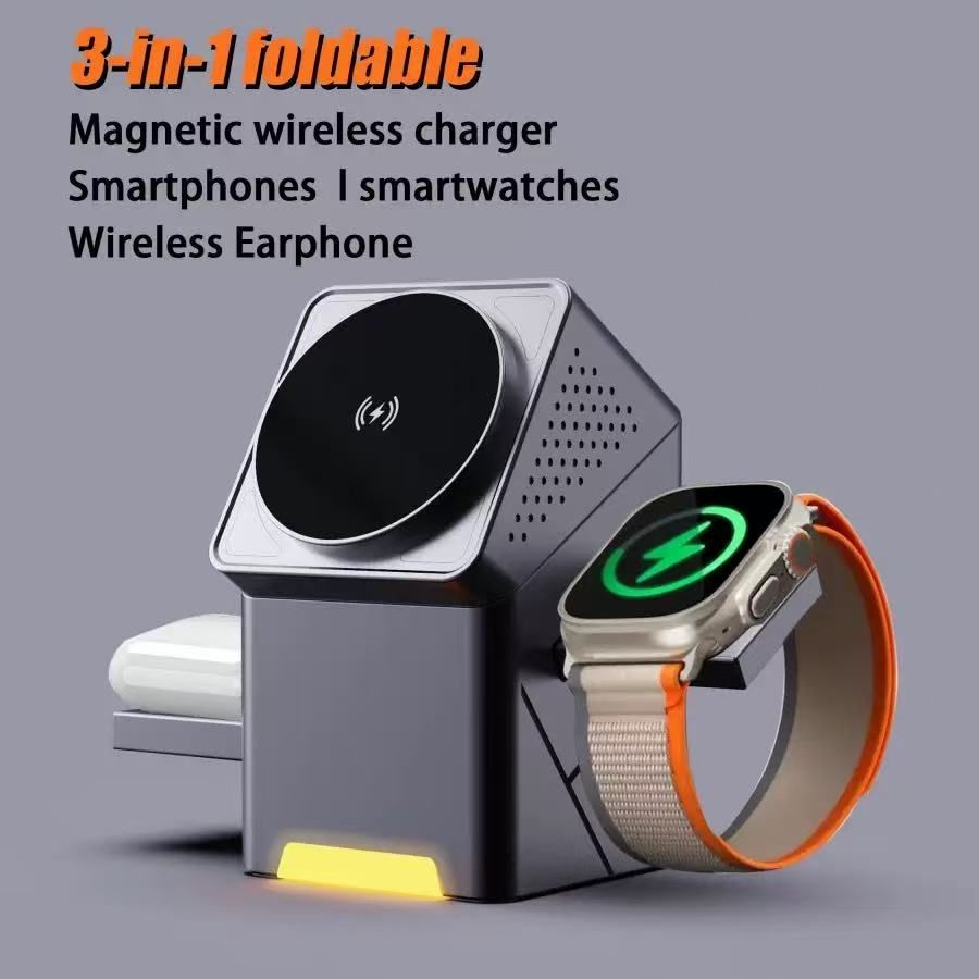 Rubik's Cube Rotating Three-In-One Wireless Charging Desktop Stand Multi-Function Watch Headset Mobile Phone Fast Charging Magnetic Suction
