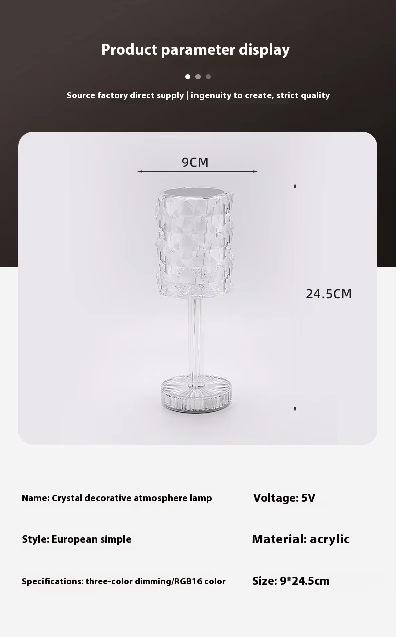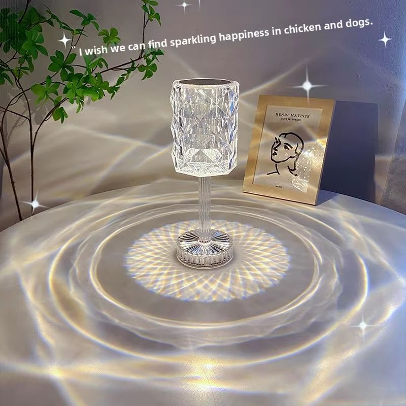 Simple tactile light, diamond crystal table lamp, gift, home touch night light, sixteen-color adjustable light